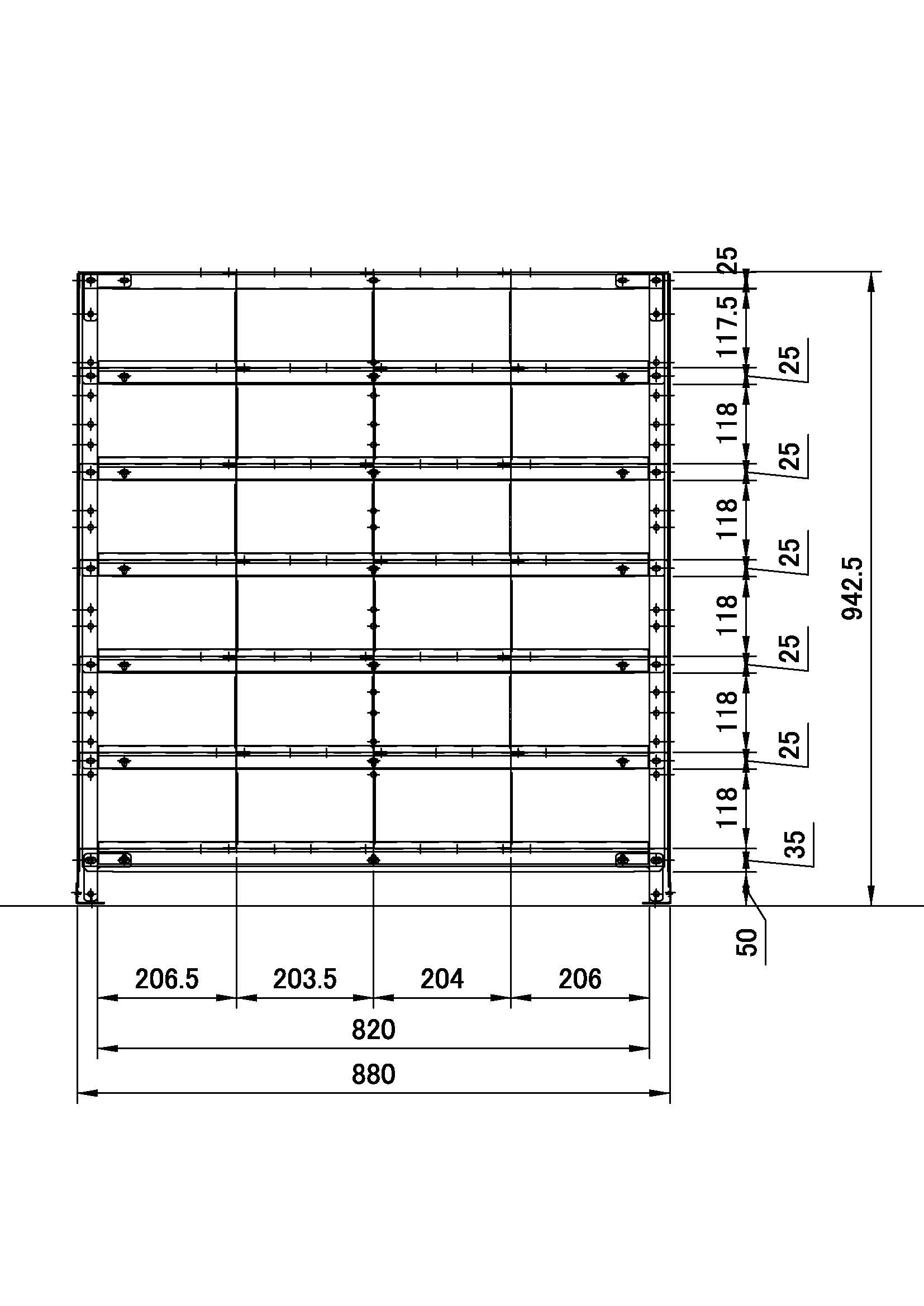 区分棚 横4区画 x 棚板有効6段 高さ940 x 横幅880 x 奥行250