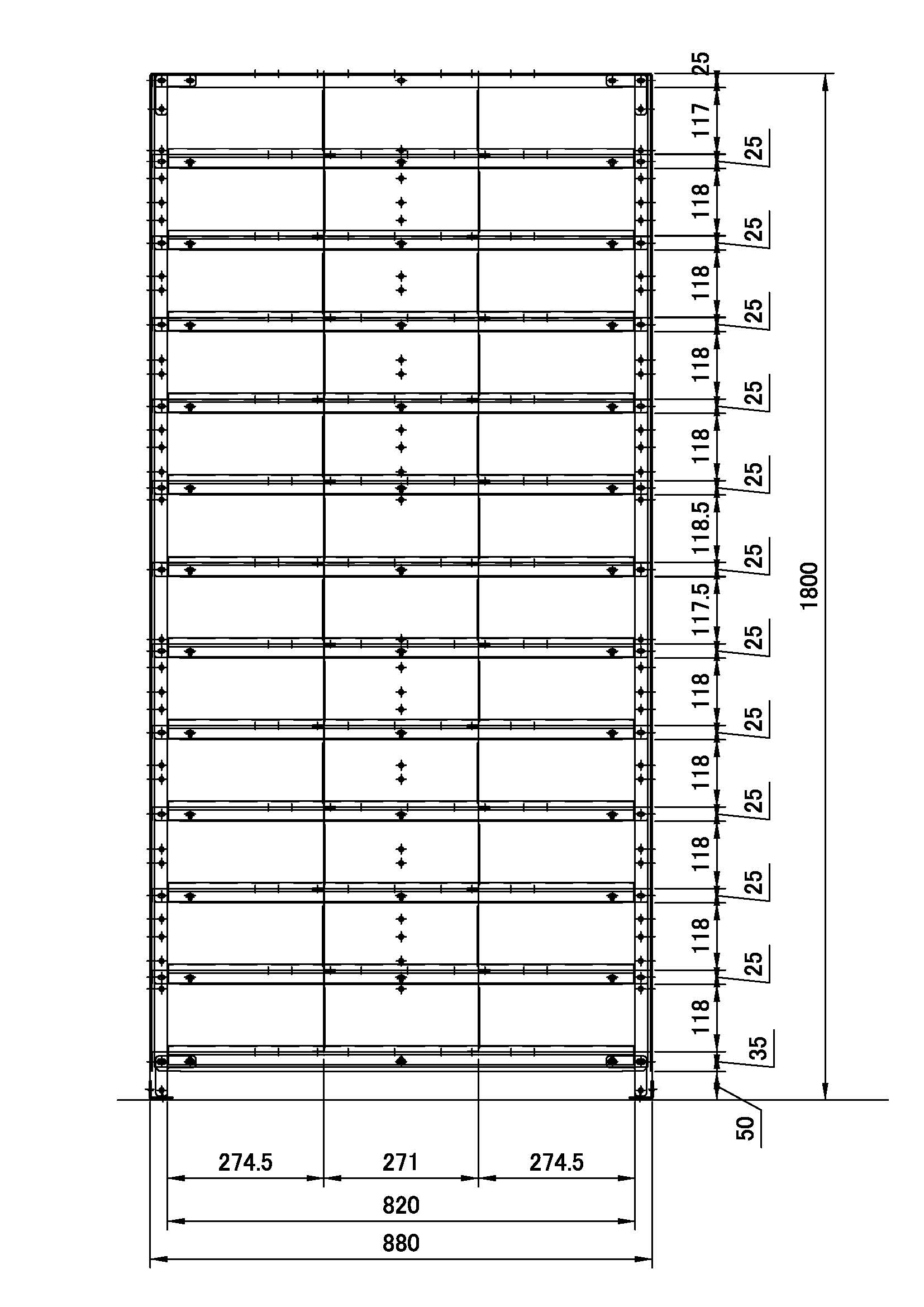 小物部品、パーツ、また伝票、帳票類の整理、整頓が可能です。 注意:完成品での納入となります。パレット発送となりますので車上お渡しが基本となります。お客様の方で車上から荷下ろしをお願い致します。 メールで情報を送る URLをコピーする 区分棚 横3区画 x 棚板有効12段 高さ1800 x 横幅880 x 奥行250 在庫有り ¥59,620 ¥59,620(税込) 数量 お気に入り お問い合せ 均等耐荷重 100kg/段※棚板1枚あたり 色 ライトグレー色メラミン焼付塗装 生産国 日本ISO認定工場生産品 棚板の厚さ 25mm 耐荷重 100Kg/段 出荷の目安 実働7-10営業日で出荷 ※在庫がある場合