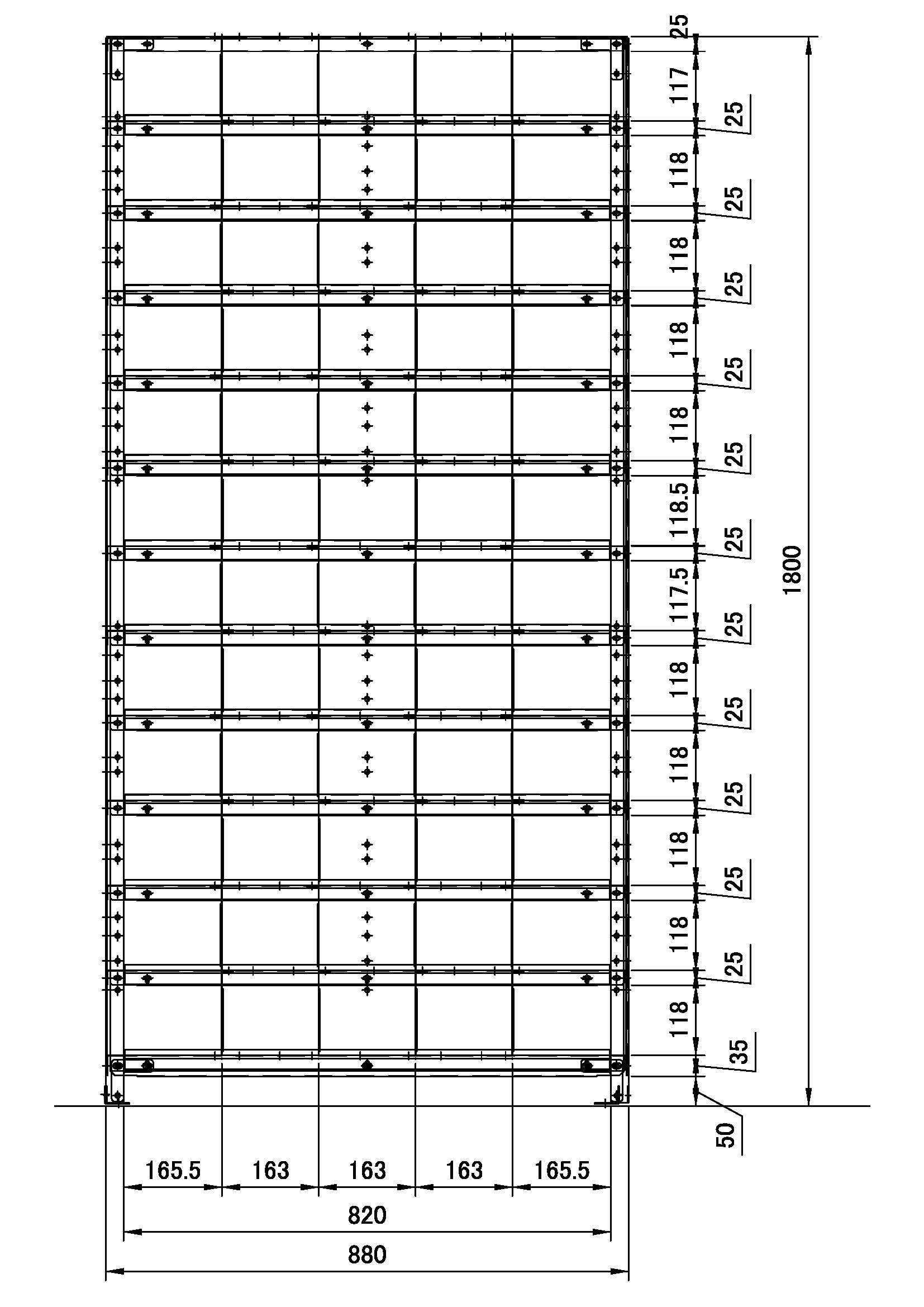 小物部品、パーツ、また伝票、帳票類の整理、整頓が可能です。仕切り板はナイロンプッシュ式に付き、移動が可能で枚数も増減できます。 メールで情報を送る URLをコピーする 区分棚 横5 x 棚板12枚 高さ1800 x 横幅900 x 奥行300 在庫有り ¥73,540 ¥73,540(税込) 数量 お気に入り お問い合せ 均等耐荷重 100kg/段※棚板1枚あたり 色 ライトグレー色メラミン焼付塗装 生産国 日本ISO認定工場生産品 棚板の厚さ 25mm 耐荷重 100Kg/段 出荷の目安 実働7-10営業日で出荷 ※在庫がある場合