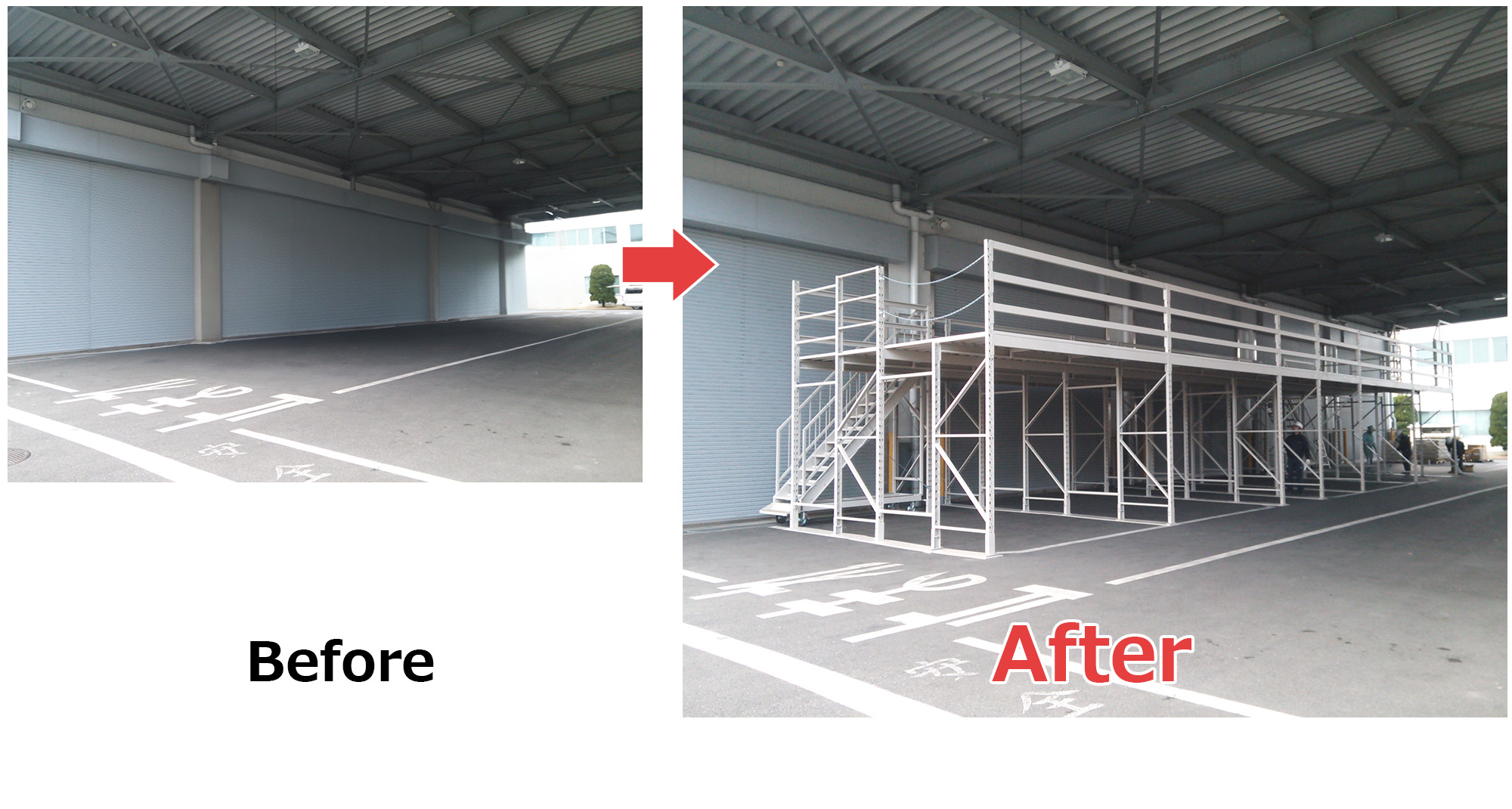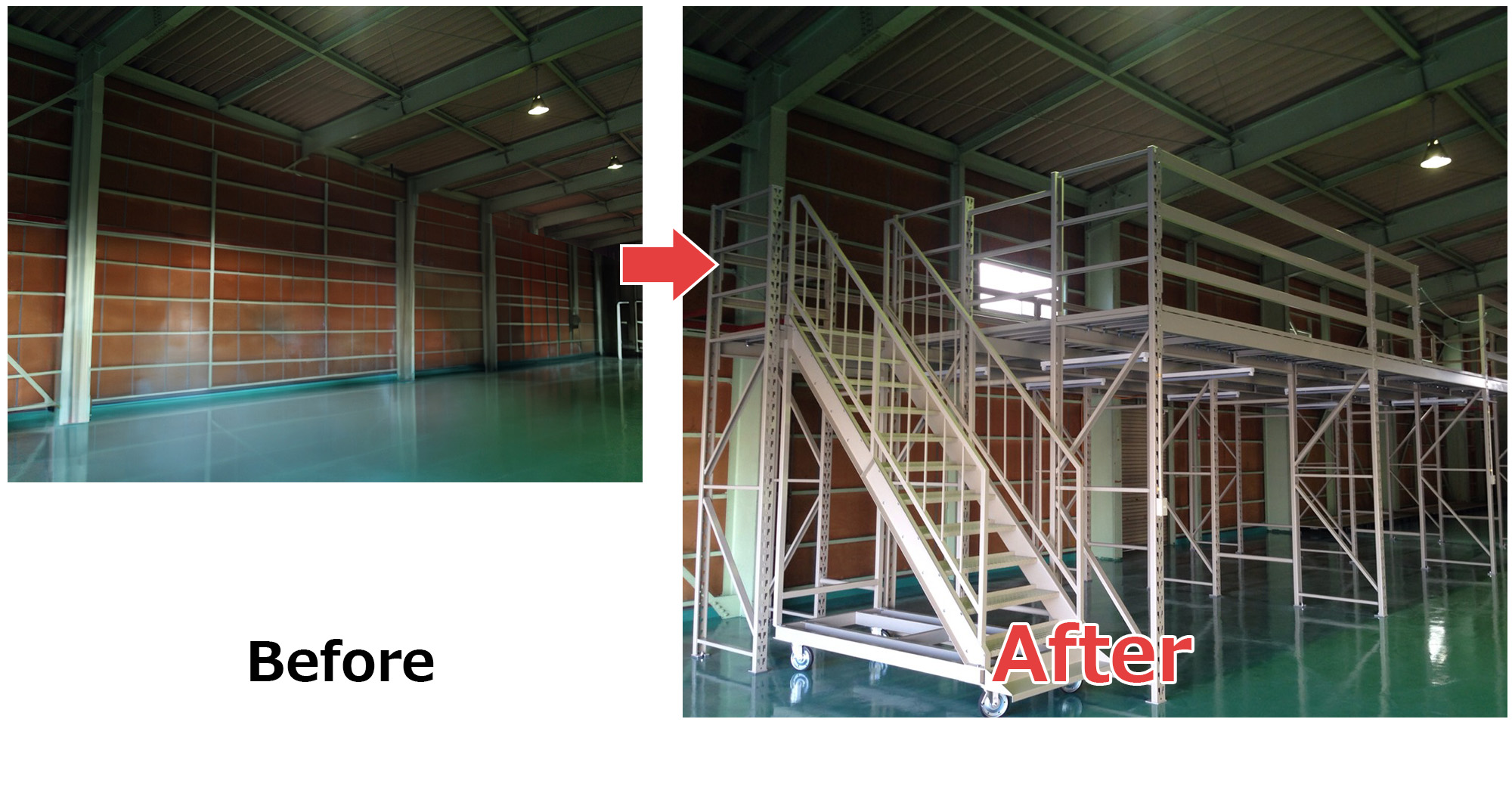 ユニット式ラックステージを設置することで、倉庫の床面積を最大で2倍に増やすことができます。