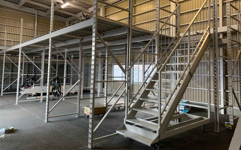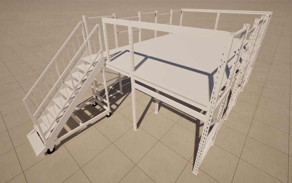 従来の中二階と比べて、短期間で設置でき、必要なスペースに合わせて自由にレイアウトできるのが特徴です。